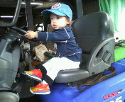 そしたら、工場に置いてあるリフトに乗りたいと要求!!いつも大きいじいちゃんが乗っているんだけど、ちょっと試しにRIKUを乗せてみた。