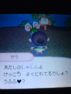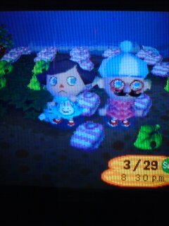 昨夜 海外版の森で 通信しました前回のmelon*jellyさんとの通信以来で2回目です ふにふにさんのTalbo Townにお出かけしちゃいました 昼間に通信した時に たまに 夜に開門してると言われていたので門番さんに聞いてみたら 開門されてたmilk(なおちゃ) Amiga(ふにふにさん) 英語のできないなおちゃに つきあってローマ字で話してくれましたローマ字すら怪しくて ごめんなさい 可愛い住人さんが多くてうらやましいですここの村も交配のお花でいっぱいでした 残念ながら お店が開いている時間ではなかったのでうちの村に来てもらえず今度は melon*jellyさんも交えて3人で遊べたらいいなデパート化に協力してもらわねば それまでにリアクションが欲しいとこです来て!!!! そうそう らっきー村で写真を貰いました古いDSでプレイしたので ちっとも見えませんね これで 引越してもいいや 4村生活は なかなかハードです