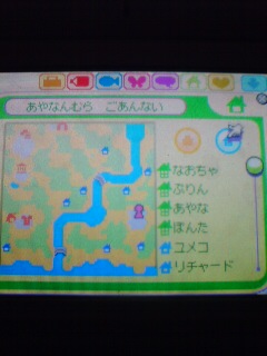 昨夜10時過ぎにやっと『街森』の順番がまわって来たなおちゃです昼間に村は決定していたものの キャラを作るのに何度もやり直しDSの攻略本を見ながらやっていたけどDS版とは一部違ってました髪型は違いますが参考までに(間違ってたらすみません)質問にこう答えると・・・上上上 上上下 上下下 上下上下下下 下下上 下上上 下上下 我が村の紹介です村名は ぷるるん村ですキャラ名は なおちゃコードはまだとってません特産品は初期住人は それからDS版にはいなかったガビ←オレ系 アイコン無しのボク系ペンギンのホッケーそして今朝やってきた←パンツマンw空き地がいっぱいあったから まだ住人はやってきそうですね 昨夜はが来ていましたが 『ボロのじゅうたん』が3枚も集まらずアイテムゲットできませんでした今日はが来ていてブラックバス(多分)をあげたらくさのデザインをくれましたよ きのこの中に家具もまぎれてるようです 家族4人でやっているのでなかなか順番が回ってこないのですが新しい森生活を楽しんでおります