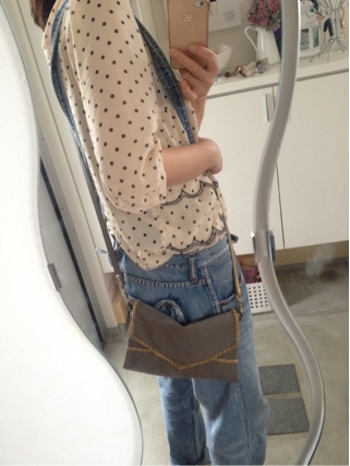 こんにちは~今日は朝から日曜参観でした三姉妹みんな小学生なので40分授業で三人を見て回るのはとっても忙しかったです今日のコーデは前にも載せた格好だったので昨日買ったばかりのポシェトだけどうぞ近くから中はこんな感じ荷物が少ないお出掛けやめろんの散歩に携帯を入れるポシェットが欲しかったので買いました頑張ればお財布も入るのよwwwいつものアウトレットのチャオパニックで、青いシールの付いた商品3点1575円というセールをしていてそのうちの1点がコレです他には黒のチューブトップとボーダーTシャツを買いましたしかもちょうどその時3点以上お買い物すると更に10%オフセールをしていたので1575円から10%オフで買う事が出来たのです~てことは・・・一点500円してない事になるよね~凄くな~いでもね、ほんとはね、買いたいのはこのポシェットじゃなかったの・・・若干の妥協買いさかのぼる事数日前・・・パパと買い物に行ってホワイトデニムを買った日ですその時も三点1575円を見てて二点しかお気に入りの物が見つけられず諦めようとしたら、お店のお姉さんがこれもいいよと勧めてくれたポシェットがあって私もめっちゃ気に入ったので買います店員さんも私も買おうって盛りあがったんだけど、いざルンルン気分のレジで「これ青シール貼ってないわ・・・ごめんなさい~」って言われたの~しかももう一点気に入ってたポーチも糸がほちれてて・・・結局その時はご縁がなかったのねと諦めて帰って来たのだけど、青シールでなくても買えば良かったと後悔してました・・・そしたら昨日パパの欲しがってたキーホルダーを父の日のプレゼントに子供達が買ってくれることになり、またまたアウトレットに行く用事が出来てたのであのポシェットがあれば買おうと思い行ってみたけどもう無くなってましたでも前には青シールコーナーに無かった可愛いボーダーTシャツを見つけてしまい、前の候補のチューブトップも残ってる、あと一つ・・・これでいいか~がこのポシェットだったのです未だに諦めたポシェットが忘れられない未練タラタラrikakoですが、また新しい出会いを信じて頑張ります←大げさやねん長々とくだらない文にお付き合い下さりありがとうございました更新の励みになってますのでよかったらポチっとお願いしますにほんブログ村