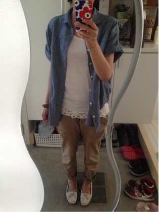 こんにちは~今日は久々のコーデですこうも暑いと涼しさ重視のコーデばかりになってしまってなかなかUP出来ず・・・今日もたいしたコーデではありませんがwどうぞ実はこの靴さっき買ったばっかりなんですグリーンパークス最終セールにて70%オフの1200円ナリ~このお値段なので惜しみなく素足でガンガン履こうと思いま~す今日も遊びに来て下さりありがとうございます更新の励みになってますのでよかったらポチっとお願いしまっすにほんブログ村