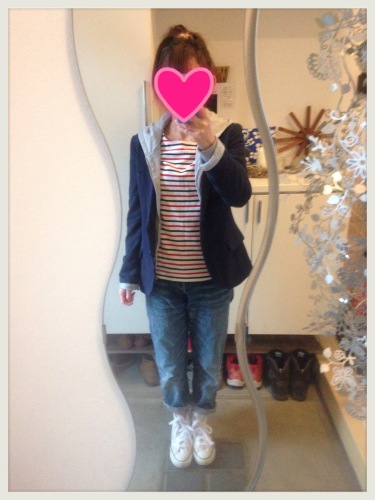 こんにちは~今日は雨~それだけで気分が上がりませんが・・・コーデだけでもと少し春を意識してみました~ JK *** forever21パーカー *** ???ボーダー *** and.it デニム *** ジャーナル 靴 *** コンバースこのJK、肘の部分がとっても可愛いんですよ~春が待ち遠しいな~今日も遊びに来て下さりありがとうございます更新の励みになってますのでよかったらポチっとお願いしまっすにほんブログ村