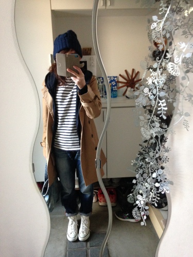 こんにちはー(^o^)/手持ちでコーデ↓あ、ニット帽だけおNEWだわ(^^;;パパのだけど(笑)トレンチ コレクトポイントパーカー 無印ボーダー オーチバルデニム cepoスニーカー コンバース幾つかプラスしたい厳選アイテムが決まった♡♡♡またGETしたら記事にしまーす(^^)見ていただきありがとうございました♡