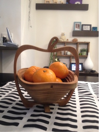 とりあえずみかんを入れて撮影したけど、実際は玄関においてカギ入れにしようと思ってます♪