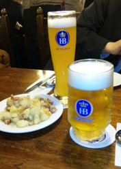 私がホフブロイの生ビール、同居人がヴァイスビールで乾杯。イベントの話題で盛り上がりながら、ビール&ドイツ料理を楽しみました(^^)