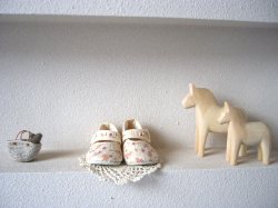 お正月気分を追い出そうとニッチのディスプレイを変更しました♪名付けて「シアワセを呼ぶ」バージョン!見た目ちょっと地味ですね~(笑)左から手編みのチビマルシェには干支である羊毛でできたネズミを。そして幸せを運ぶというベビーシューズ。がおの誕生祝いで友達からもらったもの。時々がおが「履く~」と言って持ってきます。もちろんムリですが・・・それから自分用のクリスマスプレゼントとして買ったダーラナホース♪こちらも幸せを呼んでくれるラッキーアイテムなんだそうです。今年もみなさんのところにもたくさんの幸せが訪れますように~!。 ポチッとしていただくとランキング画面が別ウインドウで開くようになりました。そこから「+++日々のこと+++」をクリックしていただくと双方向で2ポイント加算されます。お時間があったらそちらもポチッとしていただけるとうれしいです^-^ -----------------------------------------------------------ファイブスタイルで40万部発行のママ向けのフリーパーパー「ママchan」にブログを紹介されたいママさんブロガー募集受付中!https://www.fivestyle.biz/info_register/mamachan.php-----------------------------------------------------------