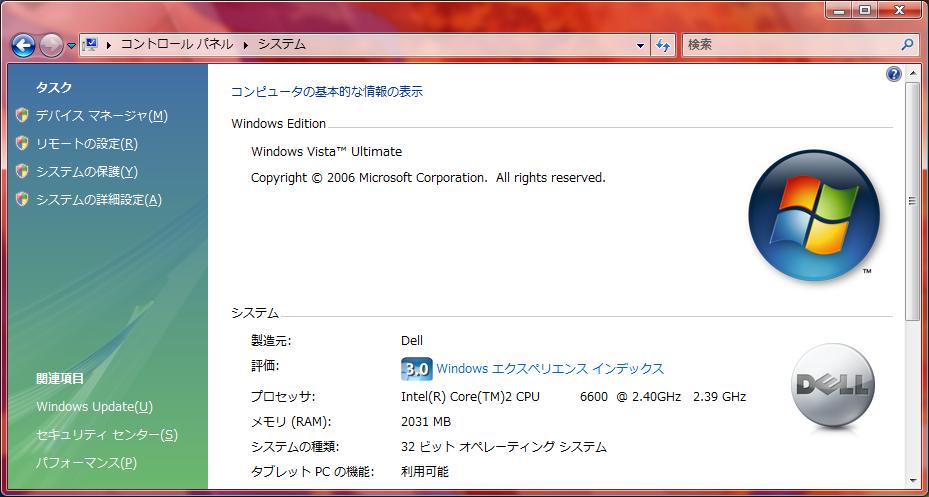 今日は、自転車を買いましたよ。折りたたみ自転車ではタイヤが小さくて遠出に向いてないんで・・・乗り心地は結構いいです。(ペダルとか軽いし)たぶんこれで高校通学になります。(2ヶ月後・・・)あと、今日は、初めて・・・洗濯機を分解しました!もう、10年以上前の洗濯機・・・という以前に、洗濯機の構造とか全く知らずに分解しましたよ・・・分解してみて、洗濯機の構造は意外にシンプルだった。シンプルなはずなのに、故障部分が分からないという結果に・・・結局、買い換え決定。さて、本題に戻ります。今日は、自作PCのスペック紹介といきましょう。パソコン名: 決めてない・・・M/B: ASUS P5B-VCPU: intel Core2 Duo E6600 2.40 GHzMemory: 2GB (512MBx4)HDD: HITACHI HDT725025VLA380(250GB) メイン Maxtor 型番調べときます・・・(120GB・80GB) メンテナンス中 BUFFALO HD-HU2(250GB) 外付けDVD: LG GSA-H42N SLCASE: CENTURY CSI-3306IIPower: SCYTHE KAMARIKI3(550W)VGA: 玄人志向 GF7300LE-LE256HSound: on boardDisplay: SAMSUNG SyncMaster740N (17型)OS: Microsoft Windows XP Home Edition SP2 Microsoft Windows Vista Ultimate 以上が自作PCの現在のスペックです。買った当時の値段で15万円(スペックのHDD:MaxtorとBUFFALOのとMemory:1GB分とVGA:GF7300LE-LE256HとOS:Vistaは含まない)という結構高額設定。現在の状況なぜか、VistaではDELLと出てしまう・・・これって普通なのかな?グラフィックを5にしてみたい!こっちは詳細ただ、HDDの部分は今整理中で近いうちに変更があると思う。ネットワークが無線を使ってたりする・・・それではまたぁ~でかい画像ですいません。。。P.Sこの記事書いてるときにパソコンの電源落ちて、最初から書き直しorz