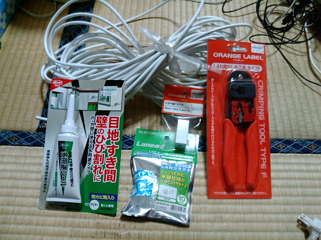 今日でゴールデンウィークが終わりですが、明日は今度の土曜日にある参観日の代休なので休みです。というわけで現在は全然課題が終わってませんwま、なんとかなるっしょ(笑)・有線LAN工事を明日再び再開 最近は全然進展がなかった配線工事も明日再開しようと思います。というのも、1階リビングから屋根裏までの配線を断念して屋根裏からいったん外に出してから1階の外壁に穴を開けて配線することにしました。そういうわけで今日は材料購入購入した物は写真の通りです。明日こそLANを開通させたいです!というわけで、昼間の屋根裏は暑いので早く起きるために今日は寝ます。