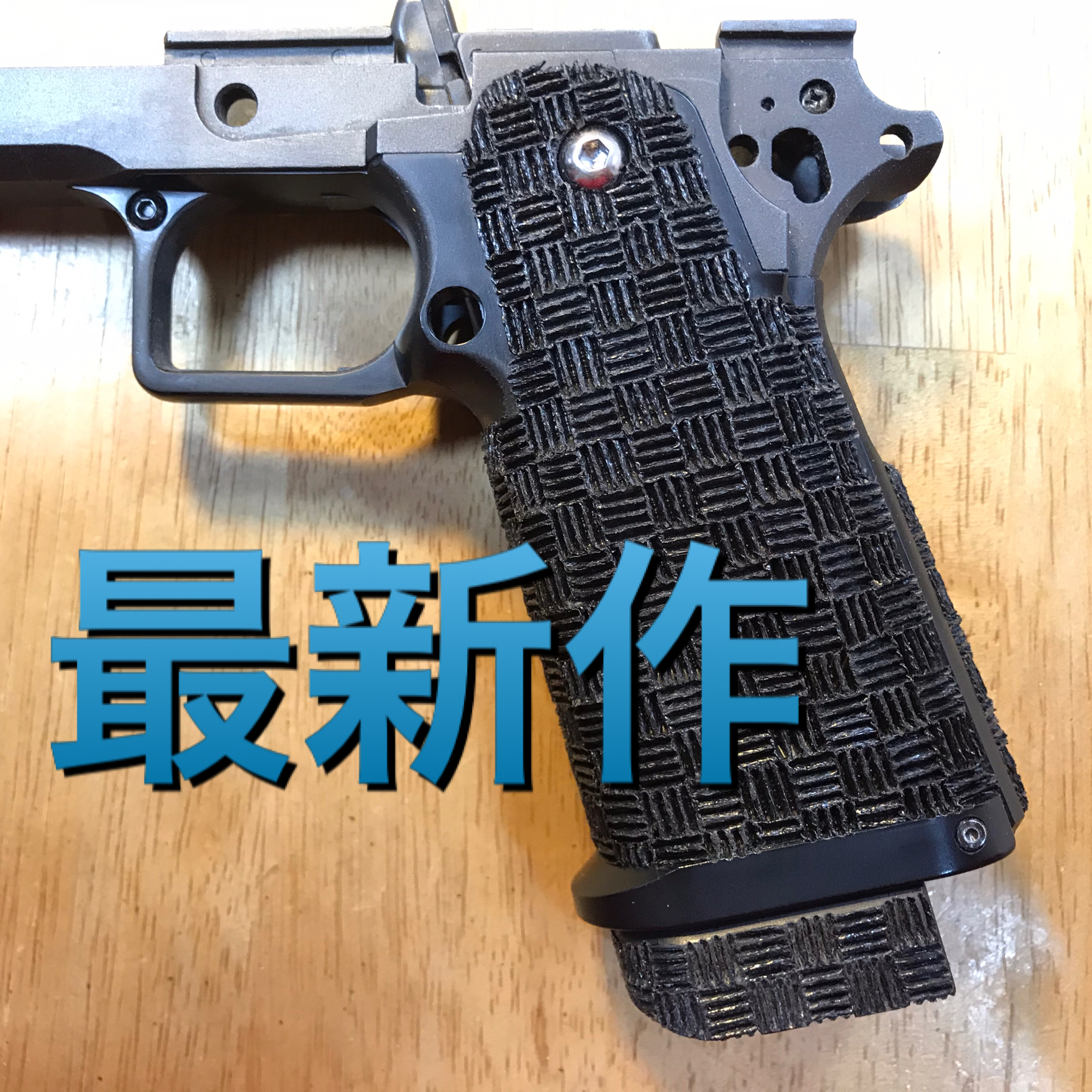 超大量在庫の瓦斯風呂の処分と並行して、(主にマルイハイキャパ)グリップへのステップリングをしてますよん。流石に数年弄ってますので、少しは早く、少しは綺麗に彫れる(溶かす、描く)ようにはなりましたが……一本一本描いているので、辛いやら、時間が掛かるやら、売れたとしても時給換算で最低賃金へは到底届きません……とほほいつもの柄なら少しだけ早くできるようになって来たでもチョット飽きたかも……で、細かく、正方形にして、綺麗に並べてみたら〜この写真のは2作目なんだけど、反対側と揃えるのが辛くて辛くて……なので片側で止まってます……で、せっかく買ったヒートペンで思いっきり太い線で描いてみたら〜悪くはない感じなんだけど、とても力が必要となるので、すごく疲れるの……反対側へ行けない….話変わって、久しぶりのヘリネタなんで100グラムなんだよっ!もうほとんどのヘリが駄目ぢゃんかよ!200グラム制限でよかったぢゃんよ!プンスカ支離滅裂で失礼