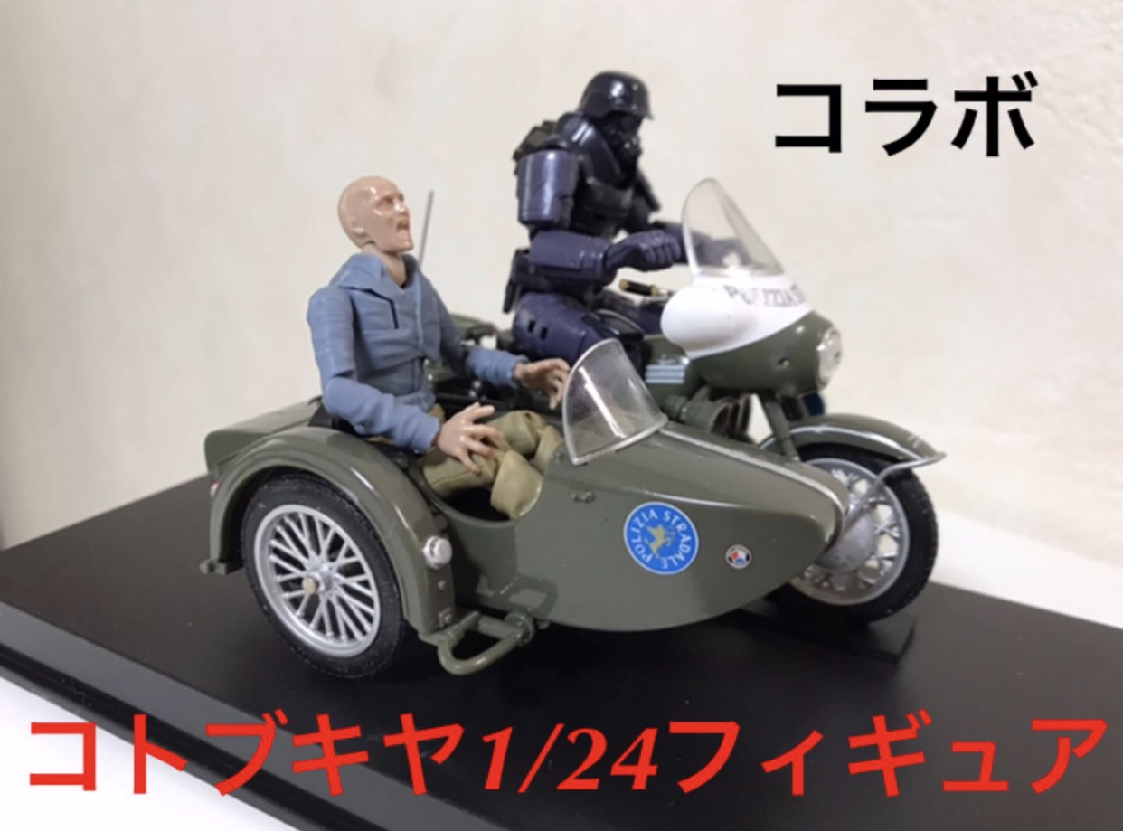 お久し振りでございます〜さて先日、久し振りに千葉方面の巡回をしてきましたところ、日本市場には殆ど無いBMWコレクションシリーズを大量にゲットして来ましたまぁ出来栄えは正直ディアゴスティーニより下でちょっと残念感が有るもののIXOや他の日本で売っているラインナップに無い機種ばかりだったので当然有るだけ全部かっさらって来ましたで、そのコーナーに、コレまた珍しい1/24サイドカーが有ったので当然のように引き取ってきましたで、今日地元でゾンビが少し安かったので入手晴れてコラボとなりましたこのサイドカーのメーカー、ブランド、商品シリーズ……どなたかご存知ないですか?他にも1/24スケールのサイドカーが有るのなら、手に入れたいのですわ