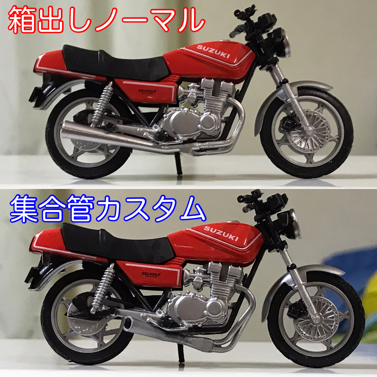 このところ嵌っている1/24スケールのバイクカスタム本日のお題は、GSX400でっす!で、余剰のゼファーの集合管を徴用、途中で切って角度変更で、こうなった〜お手軽とは書きましたが、実のところそれほどお手軽ではなかったりして〜ちゃんちゃん