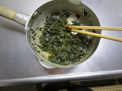こんにちは。今朝は朝から移動していましたね。でも収穫はホウレンソウ、ニンジン、さらに希望をした唐辛子の葉を収穫しましたね。唐辛子の葉は葉唐辛子にする予定ですね。唐辛子の葉150グラム、めんつゆ大匙2、しょうゆ大匙1、酒大匙1、みりん小さじ2、はちみつ小さじ1を用意しますね。唐辛子を1~2細かく切ります。唐辛子の葉を洗ってお湯を沸かした鍋でさっとゆでますね。その後冷水で絞めてから絞って細かく切りますね、別の鍋にほかの材料を入れて切った唐辛子の葉を入れて煮込んで出来上がりですね。お酒のつまみに最適ですね。作った鍋のままでしたね。今日もこれからTV鑑賞であとはマッタリと過ごしますね。