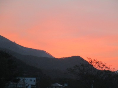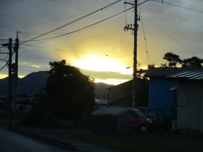おはようございます。朝早く起きてドライブ・・・でも車まで歩くと寒かったですね。友人の畑に行って運動をしないが、木を切ってそれを持って歩いてと畑の横に置いてきましたね。朝からこれですっきりですね。途中で朝焼けがきれいで一枚パチリでしたね。これからは台風が来ているので雨が降ってきますね、かなり風が強かったりしていますね、あまり被害がないことを祈りますね。そんなことを考えながらマッタリと過ごしますね。