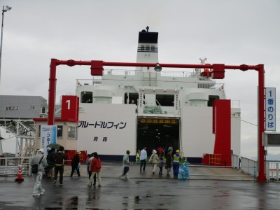 こんにちは。朝から浅虫方面にドライブでしたね。友人の畑・・・少しの手伝いでしたね、でも収穫は大根をもらってきましたね。あとはもう一人の友人のところに配達でしたね。これで午前中の仕事は終わりで家に帰ってきたが??カミさんが孫を連れて買い物??孫のアクセサリーの売り出しに?昼前に迎えが必要だそうですね。青函航路のブルードルフィンが新しくなってお披露目でしたね。後ろから入ることになっていましたね。すごい人でしたね。船の横に窓から外を眺めて船旅を楽しめるいすが置いてありますね。正面からは船首を見ながら進む方向を??いすの前から眺めてみましたね。船首をパチリですね。フェリーに乗るにはこの建物の3階から入りますね。簡単なフェリーの紹介でしたね。函館に行くときはゆっくりと船の旅もいいですね。今日もこれからマッタリと過ごしますね。