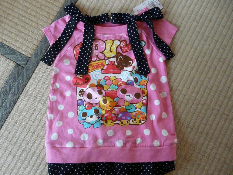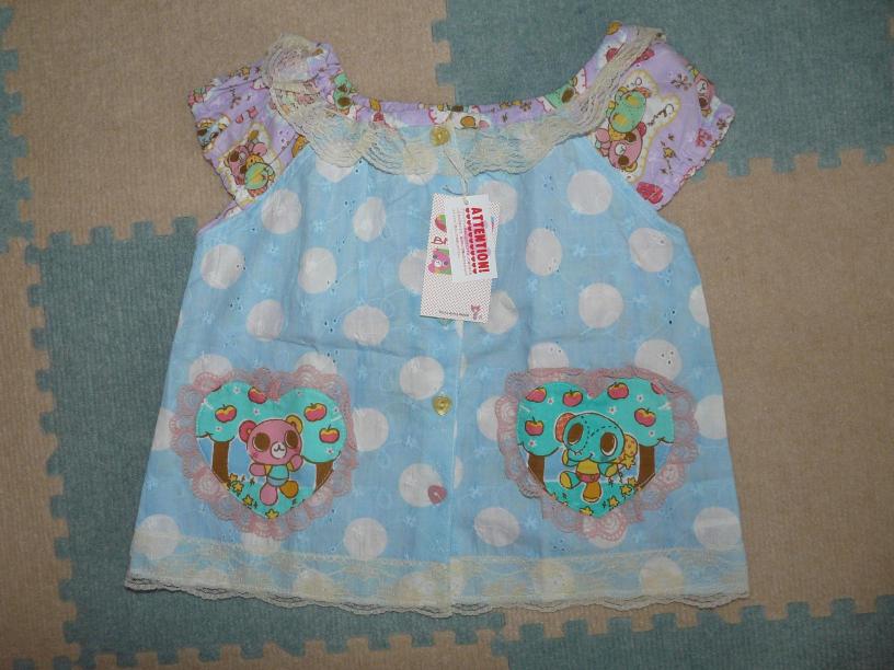 今回2人の方に交換していただきました。まずは♪ゆま♪さんのところへ我が家からTシャツとノースリーブがお嫁にいき、肩リボンチュニックが来てくれましたこれ欲しかったので本当にうれしいですおまけのおかしも娘が気に入ってすぐに食べてしまいました。また是非よろしくおねがいしますね♪続いてルレーブ。さんとの交換はとてもかわいいチュニックが来ました我が家からはチョコスパッツが旅立ちました。差額のある交換に快く応じてくださり、ありがとうございました!夏に欠かせないスキンケアパックのおまけもありがとうございました♪この前チロルさんの福袋がイマイチだったので(いつもは相性がよく満足なことが多いのですが)ミッキーさんで買おうかな~、と思っていたらうっかりスタート時間を忘れていて売切れてしまいました・・・で、楽外のほうをチェックしたら4枚で4900円と5枚で5250円のタイプ120がまだあったので両方購入しました。どれが4枚で、どれが5枚のセットに入っていたか混ぜてしまったのでわからなくなってしまいました・・・ごめんなさい。チロルさんよりこちらのほうが好みです交換希望品フリーページにまとめました。この福袋のハートブリュT120も交換希望ですお気軽にください