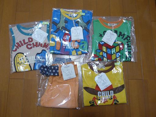 ぷちぱっくの前に購入していたCHILD CHAMPの福袋が昨日到着しました。いつも長女のブリュばかりなので、長男の服を買いました。長男は今月で1歳なのですが、お姉ちゃんと違いどこにいっても「でかいね~」といわれるビッグベビーなので来年用に95を買いました。こちらです。 タンクトップ1、Tシャツ3、ハーフパンツ1の5枚で3500円(税、送料別)なら安いかな~?ボトムス2枚欲しかったけど値段が安いので仕方ないかな、とも思います。正直、ブリュのような服が好きな私には男の子の服ってちょっとつまんないんです・・・でもお姉ちゃんのおさがりはピンクばかり、長男にも買ってあげないとかわいそうですものね。再販あるみたいですね。チャイルドチャンプ今期夏物福袋!