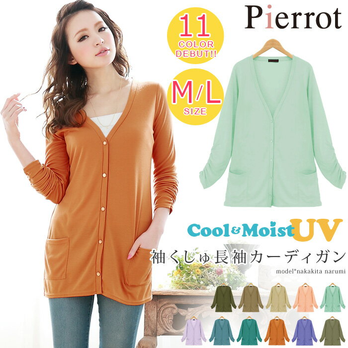 【楽天スーパーSALE*6月5日00:00~03:59】★★★UVカット&DRY加工シャーリング袖ロングカーディガン☆ M L 吸汗速乾 紫外線防止 UV機能 DRY ロング 長袖 【返品不可】(メール便配送・代引不可)