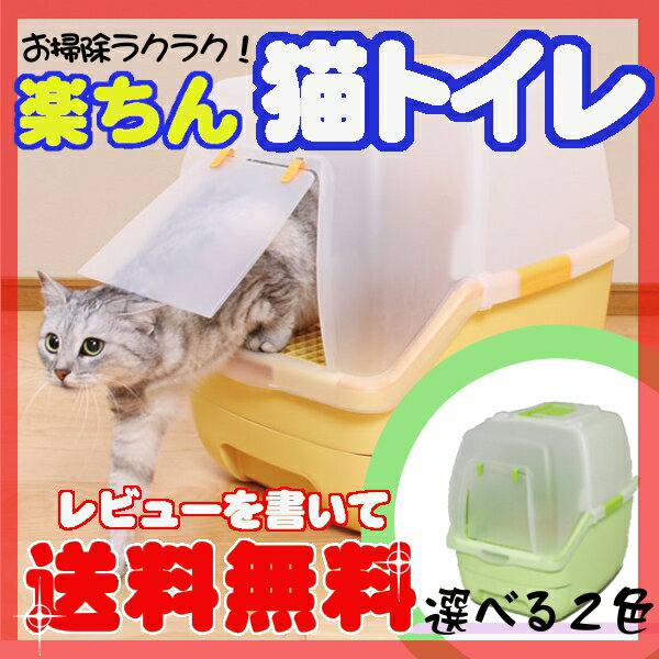 ≪レビューを書いて送料無料!≫楽ちん猫トイレ フード付きセット グリーン・オレン…