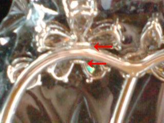 こんにちは。昨日、到着した7777ゴージャス福袋のミュゼですが・・・。↑これですね。訳ありと、言うことで・・。私にしてはめずらしく?ちょっと厳しく検品しました。いつもは使う時にならないと袋から出しませんで・・・・モチーフと台座を留めている爪がお花モチーフの裏に3か所あります。持っているジルコ物も裏をみても、爪が付いている物はありませんせしたので、これはきっと強度を高める為の改善策なのか?と思ったのですが・・・。赤い矢印が出ている所なんですが、わかりますか??頑張ったんだけど、我が家のバカでかい眼レフデジカメと携帯画像では、これが限界でした。ここが、溶接されていないような3か所のうち左はじだけが、溶接されていない様にみえるのですが、他の2か所も甘いな・・・。溶接されている部分だとすれば、溶接の忘れ?にも見えるし。他の場所で(普通のジルコデュー見たいに)溶接されていて補強の為の爪止めで、普通は溶接されていない物なのか・・・・・。ジルコPFミュゼをお持ちの方!ぜひ教えてください。皆様のは、どうなってますか??ねいる屋さんにも問い合わせ中ではありますが・・・。セール&福袋品のため、同等商品のモチーフ&色違えとなる場合があります。と、、、交換の度に言われているので、それは絶対!いや~!!ありえないけど、メルヴィーュなら許す・・。今回はミュゼ率が多かったので、どなたか、、、よろしくお願いいたします。ねいる屋さんの今日のセール¥480円って・・・ジュリエル~~しかも980円ありえない。。。。。ブルジル&アメジスト&パパラチアは持ってます。でも、お取り置きが昨日終わったばかり。いつかコンプしたいアイテムだし、とっても欲しいのですが今日はスルー。最近、ほんと~につぎ込み過ぎだ、と痛感しています。で・・・結論。キラキラをやめるのは、無理だけど。余裕のある時・福袋でお得だと解ってる時。←今回のゴージャスみたいに。後は・・・ショップ・ザ・イヤー受賞セール・決算セール・年末の福袋とセール。に重点を置いて、ゆっくり集めていけば、良いかな。と思いました。今日はほんとは、をお家にある物で、代用する方法を載せようとおもってたのですが、長くなってしまいましたので、次回の機会に・・・。むかーし、雑誌?だったか、ネイリストさんだったかに、聞いた?見た?方法です。では!本日も最後までお付き合い、ありがとうございました。