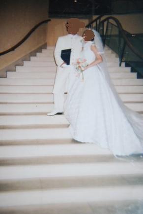 こんばんは。今日は私たち夫婦の結婚記念日です。入籍したのは9/13日。これはふたりの誕生日の日。偶然同じ日なんで・・絶対この日って決めてたの。で・・・今日は結婚式をした日・・・です。早いもので・・・・8回目になりましたお付き合いから考えると13年。お付き合い当初は彼も私もアパレルで働いていたので・・・土・日はもちろん、年末年始でさえ元旦から仕事ゲリラ的に交際3ヵ月で、彼が私の家に住みついちゃったアパートの更新費が無いと言って当の私はひとり暮らしがとっても楽しかったので、ちょっと迷惑何年か経ち・・・結婚と言う言葉が出てきた時、私は今のあなたの稼ぎじゃ、無理よ~と・・・・会社自体も倒産寸前だったので、彼はこの機会に・・・と運送会社へ・・・今の運送会社に行くまで・・・転職を繰り返すこと4回。もちろん・・倒産したり、働く条件があまりにも酷い、と言う事もあったね。私と言えば・・・アパレルで新宿の店長を務める事になり・・ひと夏で体重が8キロも落ちるほど、ハードだった。体力・精神的に。それでも楽しかった~アパレルは私の転職いつか・・・復帰したいなこだわりにこだわった・・・ドレス&ブーケ仕事が忙しくって、新婚旅行はおろか・・・新居も探す間がなく住まいは私が借りた1DKのまま。新婚旅行代わりに、お互いの家族だけを集めた避暑地での結婚式。むかーしの写真なので、画質が悪いです。今思えば・・・もっとこうしたかった・ああしたかったって点はあるけれど。思い出の一枚です。この後・・・自分がこのドレスショップで働く事になるとは、想像もしてませんでした。まだまだ・・・積もる話はあるけど。今日はこの変で。本日も最後まで、おつきあいありがとうございました。