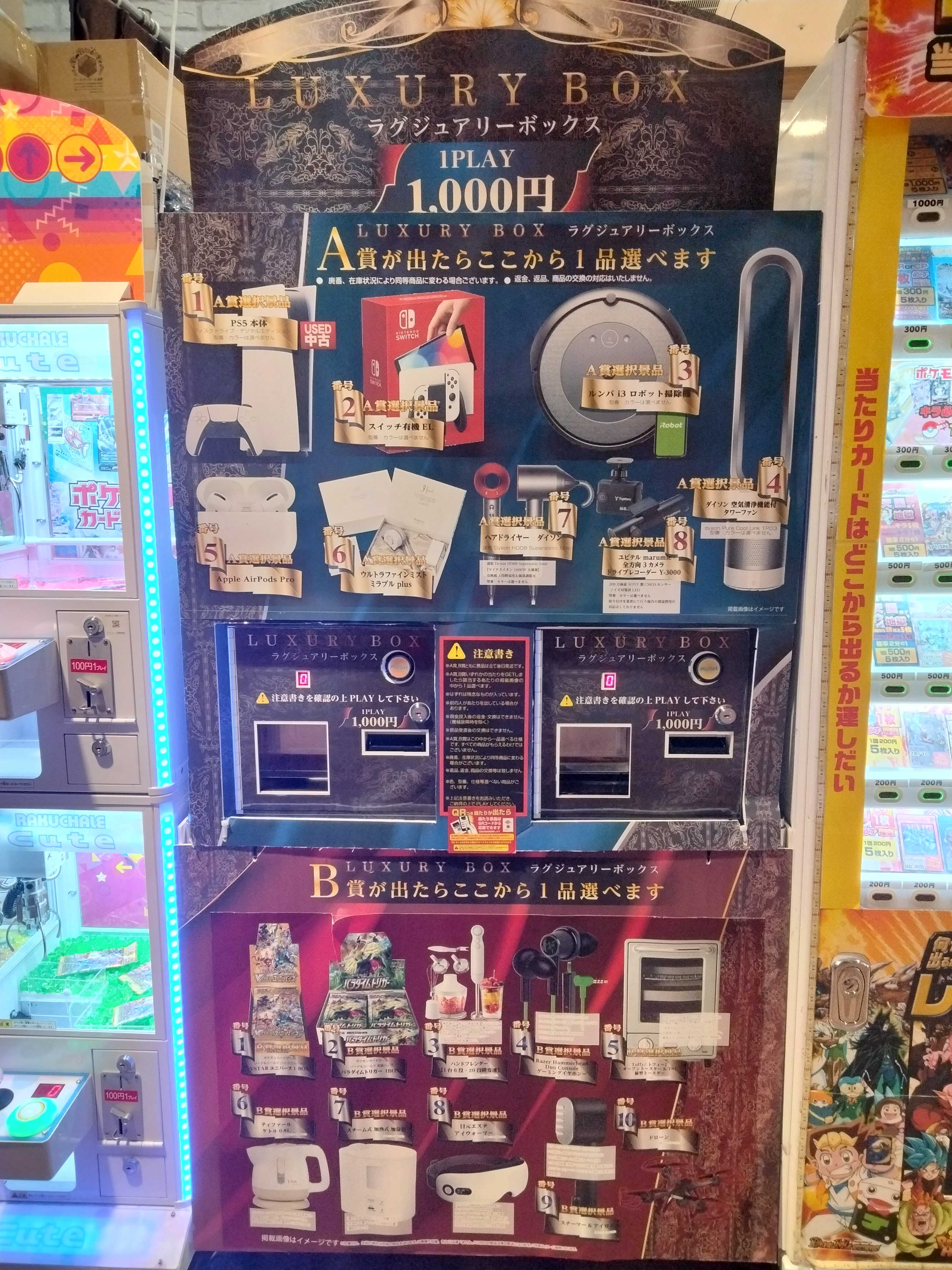 当たると豪華景品がもらえる1000円ガチャ今回はハズレ…次回に期待かな