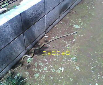 今日は入り盆。実家は親戚が集まり、夕方から宴席です。午前中はジムに行こうかと思っていたけど、やっぱり嫁は家にいることにしました。 えらいぞ、嫁! ←自画自讃。(といっても、することなかったけど。今、頼まれて枝豆を茹でているくらい)で、結局、午前中は庭仕事をして過ごしていると・・・。裏庭の勝手口の前に長ーいヒモ。なんだろう? 今朝はなかったよ??ゴミでも飛んできたかなぁ~・・・え゛? 動くの??ぎょえー!! ヘビだーー!!夫が手に持っていたモップで突っつくと逃げていく、そりゃそうだ。私は義父を呼んできた。姪のミズキやお盆の挨拶に来ていた叔父もやってきて大騒動。ヘビは縁起がいい生物なので、殺さないで裏山の茂みに追いやろう。棒で突っつくと威嚇してきた。 ←夫はビビったらしい(笑) んー、けっこうな大きさでしょう?1.5mはあると思うのよ。アオダイショウなのかな? シマヘビ? アナコンダ??結局フェンス越しにお稲荷様の縁の下に入り込んでしまった。出そうとしたけど出てこない。放っておけばそのうち出てきて、山に帰っていくだろう、ということで決着(?)その後、隣家の奥様が庭に出てきたので、注意だけ促しておいた。さすがに、カマキリは慣れたけど、さすがにヘビは・・・。お庭に出るときは、ちょっと気をつけようっと。さて、枝豆は茹であがったかな?