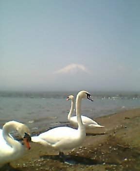 朝食時にくすねてきた食パンで白鳥にフィーディング。
