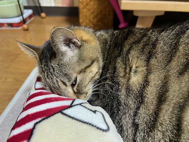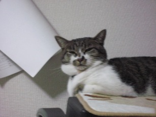 今日もりんのことなのぉ 1月4日の日記にも書いてたんだけどこのときは、大きなりんのオチリのことだったよね 今日は同じ場所でのりんのこと寝てる、寝てるあっ! 有線の上にカバーしてありますから念のため気持ちよさそうだなぁって思ってたんだけどあれれちょっとちょっとぉ顔を隠してるょお・・・ わかる? ほらねぇ 苦しくないのかなぁもうひとつ・・アップにしてみた鼻はふさいでないから息は出来てるみたいなんで顔を伏せて寝ちゃったのかなぁ?もしかして寝顔、みせたくなかったのかも