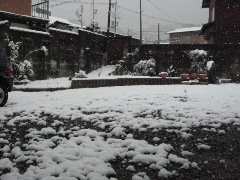 おはようございます。 朝から、にむかうなんて ほんとに珍しいことなんだけど しかも、今から仕事だし 昨日、に更新したかったんだけど ちょっと出来なくて・・・ ブログ友達のところにはお邪魔したんだけどね 昨日は、朝7時前からが降り始めた京都 午前中はずっと降り続けてたから お昼ごろには このくらい積もってた だからね、庭にあるのバッティングネットには こんなに積もってた しかも、ツララが出来てるし でね、積もったで 雪うさぎ作ってみた 可愛いでしょ 赤い目は南天の実 耳は南天の葉っぱなの おっと、仕事行かなくちゃ・・・