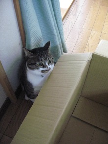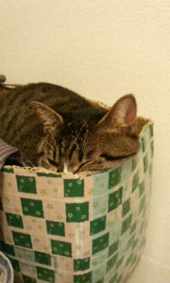 今日も 暖かい1日だったけどが陰るとチョット寒く感じる日だった京都です今日はリンのこと・・・ リンがね、 箱に入ってるのを発見 ほら これこれ 箱入り~ よく見て よく見て なんか変じゃない? これじゃあ わかんないかな? じゃあ こっちは? わかったぁ? この部分・・・ 気付いてくれたぁ そうなの 無理矢理入ってるのよ この箱にそしたら、顔のこの部分だけはみ出してるの身体も無理矢理入れた感じだけど顔が変形して見えるほど 無理矢理顔まで入れなくてもねぇ 私だったら・・ 顔が変形するのは嫌だけどなって、私はじゃなかった こんな風に箱に入ることはないやんね