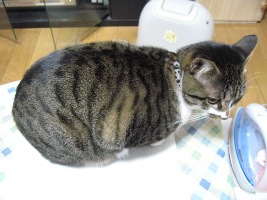 突然ですが、 これ見てぇ~そうなの・・・アイロン台の上。。 2日に一度はアイロン掛けをするfebですが、それを邪魔しに来る子がいるの いつもはアイロン台の下に入るんだけど今日は アイロン掛けの途中に台の上へ 寒かったのかなぁ~ そりぁね、アイロン当てたとこだから暖かいでしょうけど・・・ 続きができないょぉ~リン~ 降りてょぉ 何よ・・ まったくもう 何でおりなきゃいけないのって 感じの顔してるでしょ 明日の分のカツターシャツにアイロン掛けるから早く退いてね そしたらね、 アイロン終わった後にねあらら・・ やっぱりそこがよかったみたいね