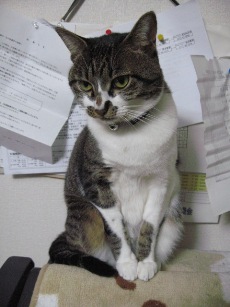 昨日は、ご心配をおかけしましたでも、今日は元気です ありがとうございました今日はね、3月18日の日記で紹介した妖怪に会えるまちの続き・・・妖怪新聞の中身をご紹介しようと思ってたの 妖怪新聞によると見所は 駅前通りをまっすぐ歩くと見えてくる全長約800mの間に120体のブロンズ像・レリーフ像足元には妖怪絵タイルで、気分は鬼太郎ワールドへ そうそう JR境線では鬼太郎列車とねずみ男列車・めだま親父列車があるらしい車外はもちろん車内にも鬼太郎たちがペイントされてるんだって 沿線の各駅には妖怪の名前の駅名がつけられてる 妖怪の力に守られるかのようなエピソードの妖怪神社もあるらしいそして、ご長寿カード このカードにはね、『おめでとうございます。私はあなたを入霊予定一覧帳より削除いたします。間違えてお迎えが来てしまったら、このカードを閻魔大王に提示してください。現世に戻れます。必ず大事に携帯しておいてください。』って書かれてるの このカードを捜し求めてお年寄りや病気の方が来られるんだそうだから、超人気のこのカードは 一日の限定枚数がすぐに尽きちゃうらしいょ運がよければ、死神の着ぐるみにお願いするかカード発行責任者、霊界黄泉国入国管理局のエンマさんにお願いすれば優先的にいただく事も出来るんだってよ 妖怪新聞読んでたら 行きたくならない?どなたか一緒に参りませんかぁ ********************************** おっとと・・・ 先日のリンの居場所は・・・ 私の背中・・・でした あの画像だけじゃわからないよねぇ~ ごめんなさい裏のタンスも開いたままだしダメじゃん 私