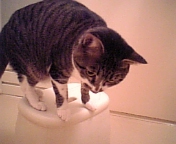 最近のリン お風呂の中での様子 いすの上で 様子を伺って・・・ 背伸びして 湯船の中を確認 お風呂の蓋の上から 再び 湯船の様子を伺い ゆっくり縁を歩いてきて・・ そして、 こんなことをするようになったの すごいでしょ 湯加減はいい感じ 一緒にお風呂に入れる日も近い?