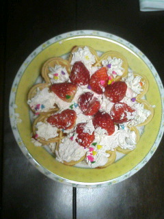 昨日長女の誕生日で、私の姉と一緒にセルフサービスで誕生ケーキを作った長女は大満足の模様でした残念ながら、を撮る直前に大怪獣(次女)に『クチャ』っとやられて、色んなところに色んなものがついてしまったケーキになりましたが、型のワッフルの生地をつなげて、デコレーションしたそうですハッピーバースデー嘔吐と下痢で休んでいた旦那もなんか元気に復活うめ~って食べてました次女もお気に入りすごい勢いで食べ始めましたが・・・どうやらイチゴの酸味が気に入らない様子じゃあ、お姉ちゃんにも「あ~ん」とやってるそばから『もうひとつあるからやるよ』な勢いの次女でした主役さん。ごちそうさま あねさん、ご苦労様でした