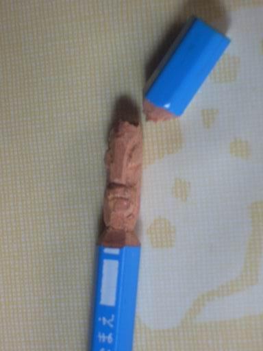 先日おきよさんのところで見つけた鉛筆モアイ感動したので自分でも作ってみましたなんか。第4コースだったし・・・『鹿男あおによし』最初から最後まで音声のみの鑑賞必死に作ったよ~旦那には『何をそんなに一生懸命作ってるの?』と聞かれ、「鉛筆モアイ」と言うと「モアイには目はないよ」と軽くノックアウトあぁ そうだったね・・・そうだったよ・・・完成する頃には旦那から「もぉ寝るよ~」のお言葉。「あ!歯磨きしてない!コンタクトも取ってない!長女がやった明日の支度の見直しもしてないじゃ~ん!」バタバタと動き回る私に私の歯ブラシを持ってきた旦那が「・・・・で、モアイ彫ってたの・・・」あぁそうだよ。モアイ彫ってたんだよこれはもう使命感なのだよそしてモアイ(?)をテーブルに置いたまま次の朝になり。ちゃーちゃーん(かーさん)とを持ってきた次女お・・・折れてる・・・・気を取り直して、群馬代表!にろすさんも髪の毛&襟付きすごいよ~