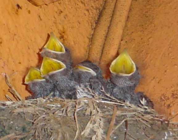 先日から追いかけている、会社に巣を作ったツバメの親子とうとう巣立ちの日が来たみたいです。1匹は勇気を振り絞って、飛び立ちましたしばらく飛んでたけど、やっぱり兄弟と一緒に居たいみたいで、戻ってきました結局3匹しか残らなかったんだけど、残りの2匹はまだまだ怖い様子。お母さん、お父さんから餌をねだるのをやめません親よりでかいのに、餌をねだる姿は親近感を持ちます昨日会社から帰る時には、親鳥が周りを飛んで見せて巣立ちを助けていました「こうやって飛ぶんだよ」と言わんばかりに、クルクル飛んで見せました1匹が頑張って飛んでみましたが、落下会社の人が巣に戻してましたこうなると、夜中にネコに食べられないか心配で子供の始めてのお遊戯会なみに、ドキドキした瞬間でした来週にはもういないんだろうなぁ