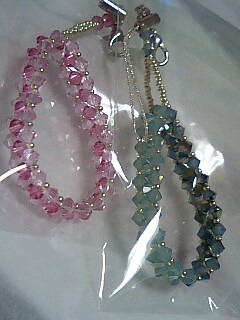 久々に、オリジナル?ビーズを作りました。オリジナルといっても、ただ単に本や網図を見ないで作ったというだけですけどね(^^) 中に入っているビーズに穴が貫通していなかったので、 はめこみ式にしてみました。 中はヴィンテージスワロフスキーです。穴があいてなくても、使いたかった! パールはスワロフスキーのものです。 ここのところ、ピンク系のストラップに凝ってます。