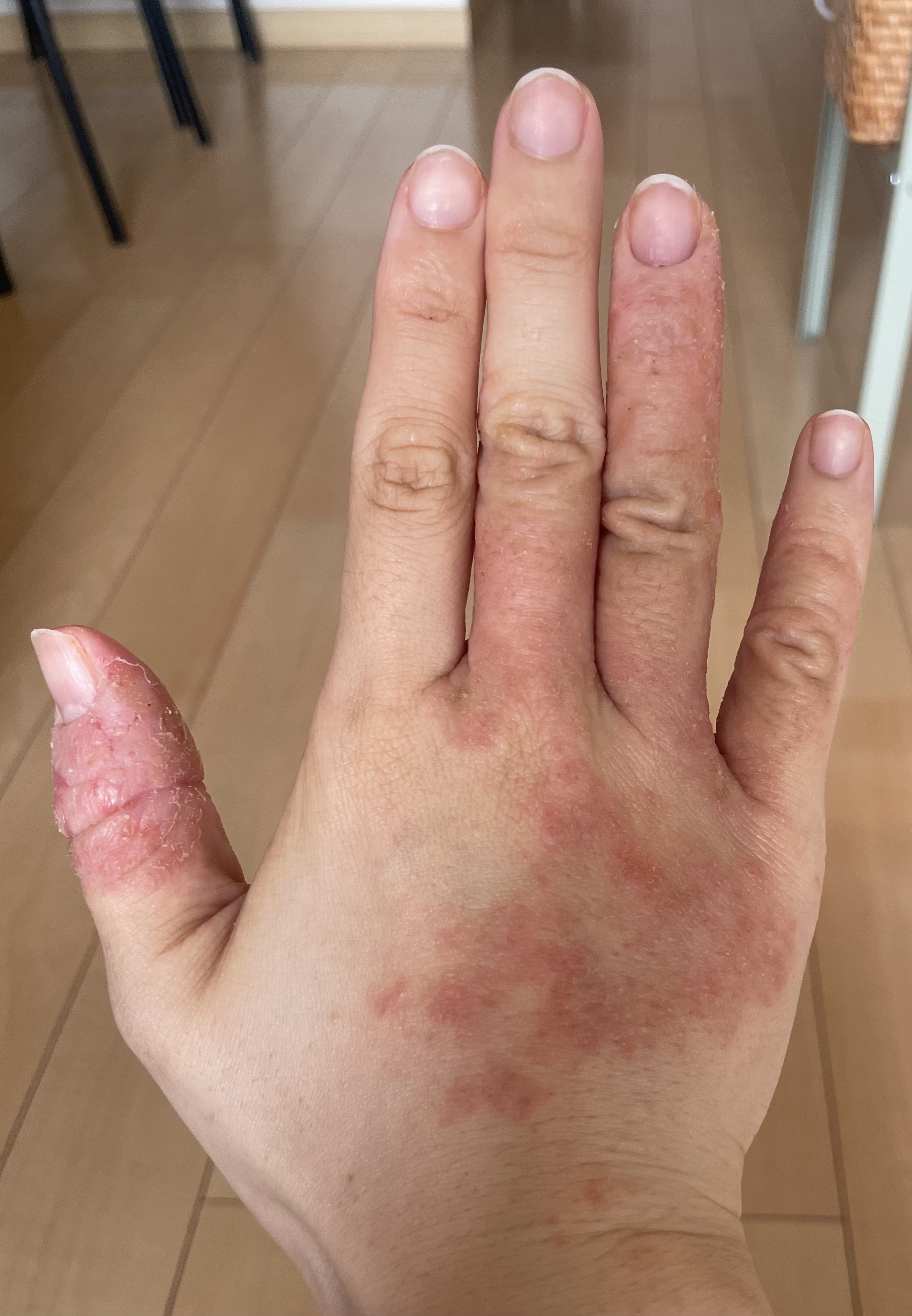 こんにちは。お久しぶりの投稿になりました。アトピーの投稿をしたその後、結局花粉やら新生活のストレスやら色々で酷くなってしまいました、、😅先週の日曜日あたりからひどくなってしまって大分ブルーな気持ちです。記録としてここに現在の写真を投稿させてください。ちょっと(というかもしかしたら大分)可哀想な手になっているので見たくない方はブラウザバックしてください、、。321でんっお恥ずかしいですが、こんな感じになっています。今までアトピーは持っていましたが、こんな風に手に出るのは初めてで困惑しております。仕事が手をよく使うため、やっぱり目立っている感じがする、、転職して早々の職場で、何となく変な目で見られているんだろうなと思っています、もしかしたら被害妄想かもしれないですけど。人の目が気になるのと、自分も気にしちゃうのがやっぱりストレスですね、、中々ポジティブになれずに、毎日手を見ては悲しい気持ちになります。早く治らないかなぁと。個人的にアレルギーの塗り薬は即効性はあるかもしれないけど使いたくなくて、食生活の改善と保湿で乗り切ろうとしています。時間はかかるかもしれないけど着実に治していきたい。そして食生活もだけど、自分のメンタルだったらストレスの解消法をもっと変えていかなければいけないなと思っています。何かストレス発散のおすすめありますか?また同じような経験をされた方、現在進行形でされてる方で何かしていることあれば教えて欲しいです!最近私は自律神経を整えようとヨガをしたり、発酵食品で腸活したり、、心と体を整えようと必死です😂笑自分が見返せるようにできれば毎日今の手を記録していきたいと思います。それでは読んでいただきありがとうございました!