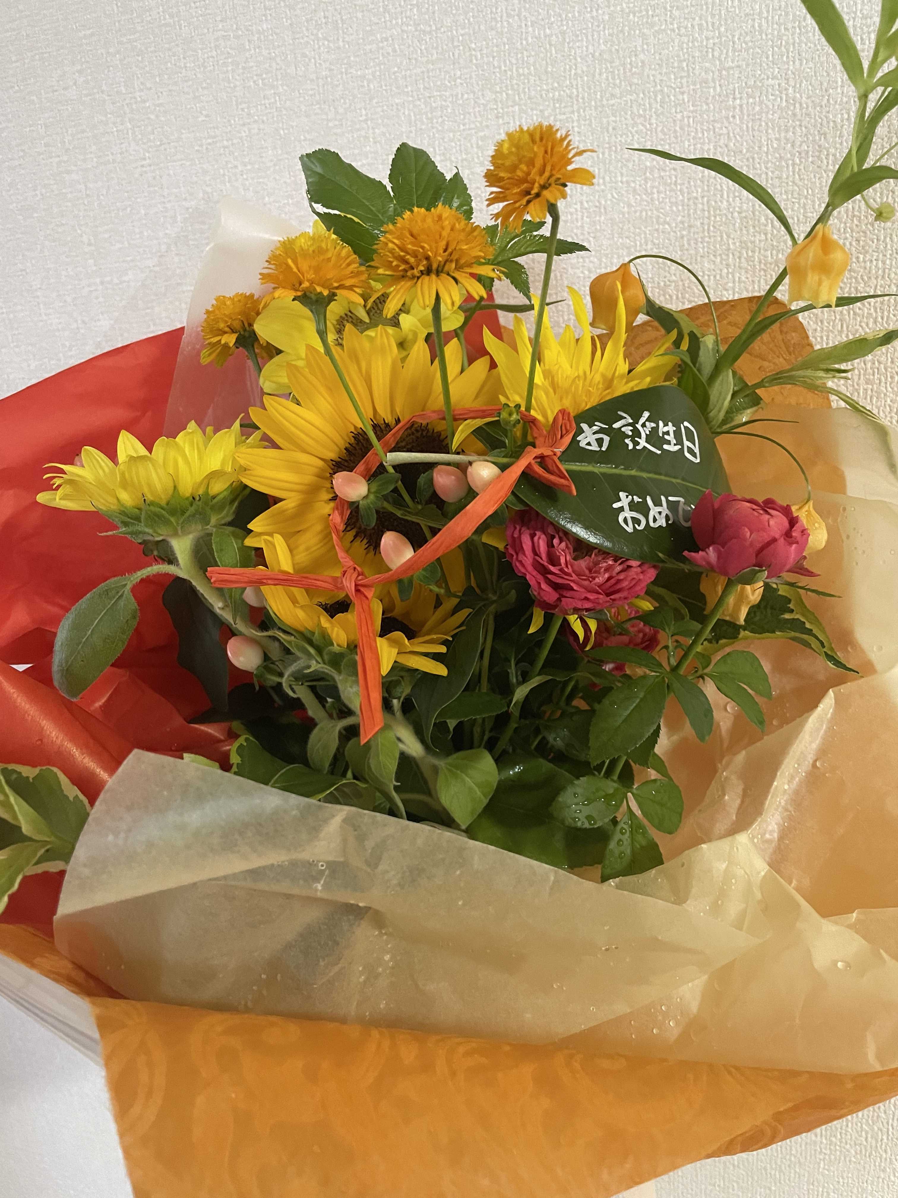 こんにちは。最近は雨のおかげか気温が下がって過ごしやすいなぁと感じています。きっとまた暑さは戻ってくるけど人間にも作物にも恵みの雨ですね!笑先日誕生日を迎えて、また一歩30代に近づきました。美味しいご飯をたくさん食べて、いい1日を過ごしました。誕生日だと普段連絡しない人から連絡が来て嬉しいなぁと思うし、気にしてくれててありがたい気持ちになります。私って恵まれてるなぁと改めて感じます。昔ほど誕生日へのワクワク感は無くなったけど、自分が生まれた日は大切にしていきたいですね。両親、産んでくれてありがとう。ここからの1年間は『自分を大切に』をテーマに過ごしていきたい!これ簡単にやれそうで意外と難しいと思う、、あくまで甘やかす訳ではなく大切に。、、生理前だし甘いものいっぱい食べちゃお(小声)サプライズで大好きなお花!4種類のひまわりが入ってました🌻ひまわり見ると心が元気になる〜本日も読んでいただきありがとうございました。
