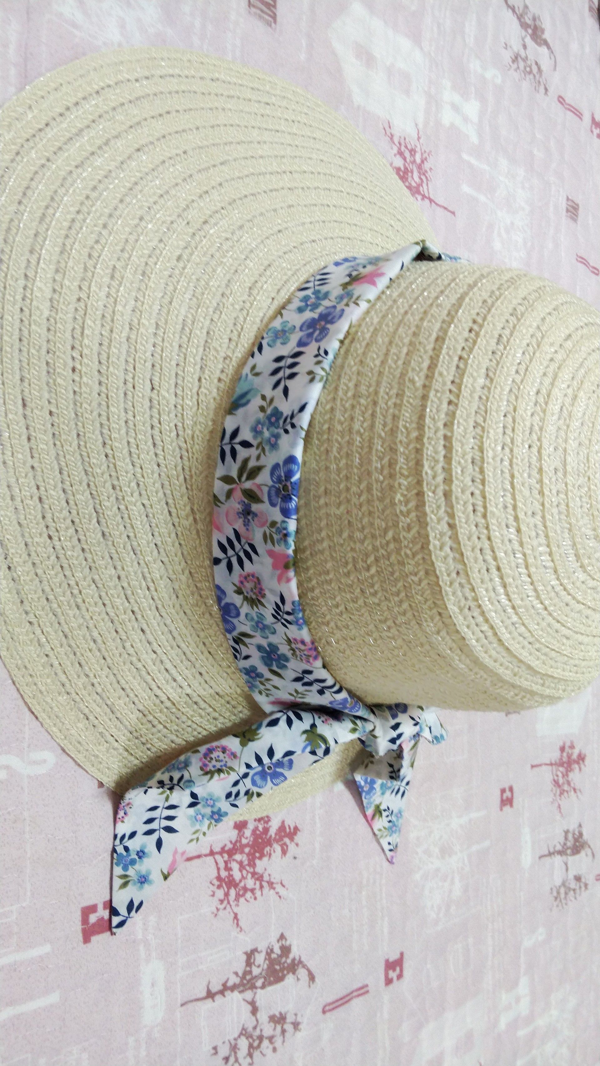 元々付いていた黒のリボンを剥がして、大好きなリバティの布でリボンを作り頭の周辺をぐるりと巻いて結んだだけという簡単な物ですが、凄く気に入りました。