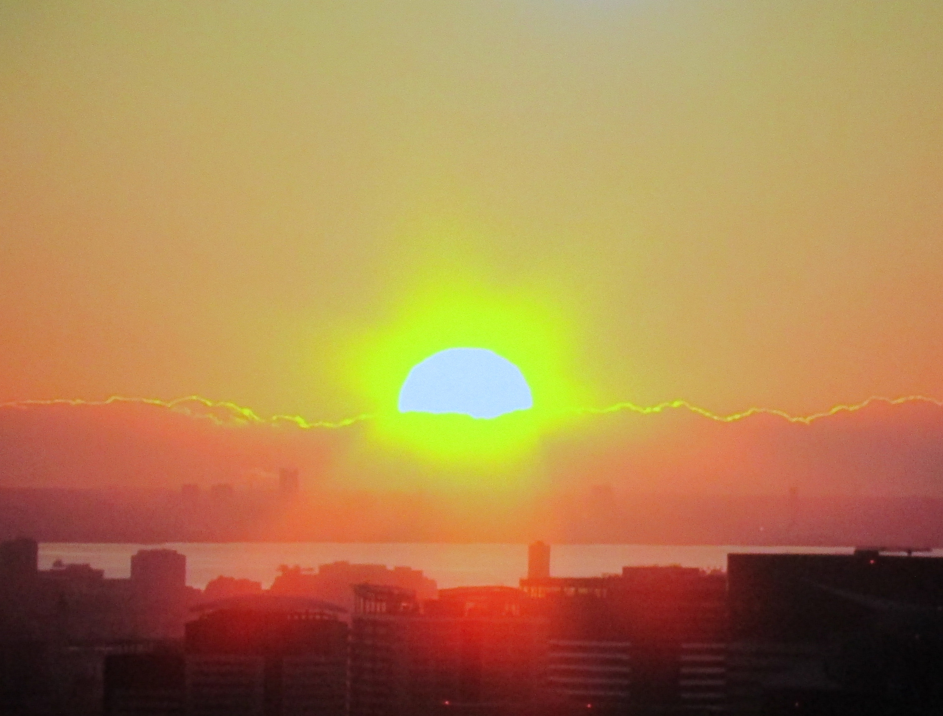 ありがちな「おはぎゃー」と言うには先週末からすでに日経平均先物は安かったので、持ち直しの気配もはったものの残念な結果で朝を迎えました。ただし円高のこともあってか、ニューヨーク市場の日本株ADRで製造業が(もちろん銘柄ごとまちまちですが)けっこうぼこぼこやられてましたんで先行きに不安を感じざるを得ませんね。モーサテのきょうの想定レンジは、・日経平均38000~38600円。・ドル円 148.8~150.1円。モーサテサーベイ(34人回答)による今週末の終わり値予想値の分布は、それぞれ、安値、中央値、高値の順に書くと、・日経平均 37800円、38400円、39200円。・ドル円 147.0円、149.0円、151.5円。株価の安いほうは、アメリカ市場弱含みと円高懸念。高い方は、企業業績見直し、とのことでした。現在の景況感に比べると、全体にやや強気な感じはします。きょうのモーサテのお天気カメラは、ちょうど日の出の時刻と合っていたみたいです。6時20分ごろでしたか。