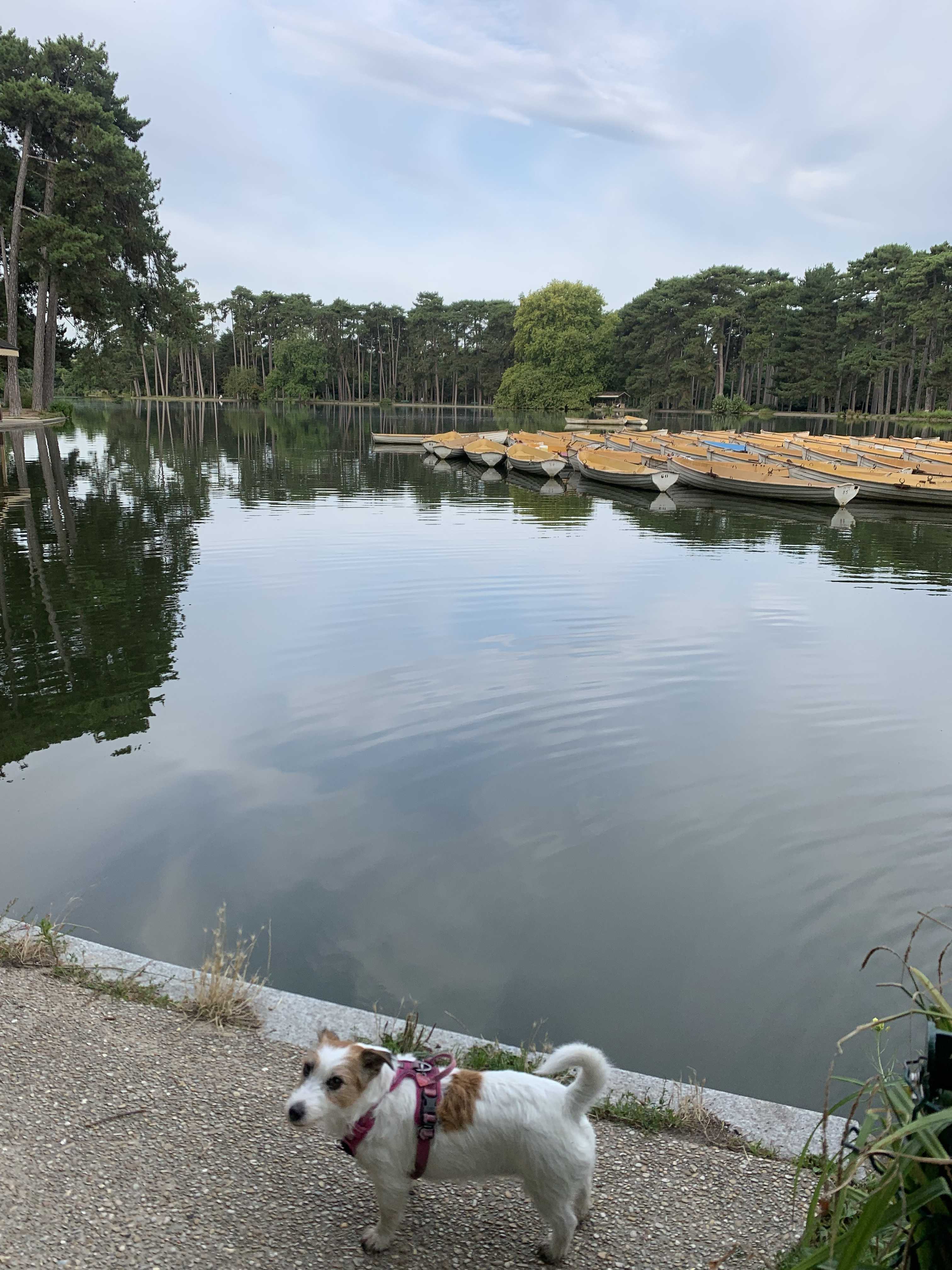 わんです。ちょっと失礼しますわんよ🐶今日も元気に森散歩です♪毎日暑くて寝苦しいです💦何が辛いって寝られないことです。なにしろエアコンがありませんからね😥森の生き物たちには好都合なのでしょう。蜂🐝やクモ、クワガタまで活発になっています。ノコギリクワガタだと思っていたけどミヤマでした💦ヨーロッパミヤマクワガタです。とっても元気な個体!超カッコイイ😎午後は暑い🥵けどまたお姉ちゃんのリクエストで郊外の公園まで行ってきました。リュエイ=マルメゾンにあるアミティエ公園です。RERのA線で40分くらいかかりました。ここには小さな日本庭園があります。なかなか美しいではありませんか!🤩公園の面積は2,500m²。その中の一角にありました。ぐるっと一周しても五分程でしょうか。紅葉🍁や灯籠があったりして素敵😆✨どこから流れてきているかは分かりませんが、意外と清流です。その証拠に糸蜻蛉がたくさんいました。ホソミイトトンボみたいなアジアイトトンボのような・・・とても大きなおたまじゃくしもいましたし、小さいヤゴも見つけました。水生昆虫にも良い環境なのですね🤗💕興味津々で遊ぶ子供達ですが、日本の子供と違ってかなり周囲を荒らしています💧キノコ🍄🟫を蹴り飛ばしたり大きな石を放り投げたり・・・フランス語でもない英語でもない、アラビア語でもない言語を話していた子たち。。。それにしても蓮の花🪷がたくさん咲いているところも見たかったな〜。今日は一輪だけしか咲いていませんでした😢せっかくの白洲が残念な状態。来た方と反対側には鳥居あり⛩️あんさんの抱っこで腕が限界になってきたので、そろそろ出ましょうか?!この公園はわんの散歩が禁止なのでずっと抱っこしていました😮💨前日に公園管理事務所に電話して犬の入場について問い合わせしています。抱っこだったらOKだけど、近所の人達はお構いなしに歩かせて散歩しているそうです。ただし、警官のコントロールにあうと罰金だという事でした。全く、あんさんは帰りの電車内で爆睡です。ずっと抱っこだったのになぜそんなに疲れているんだ?!爆睡したいのは人間の方ですわ😅