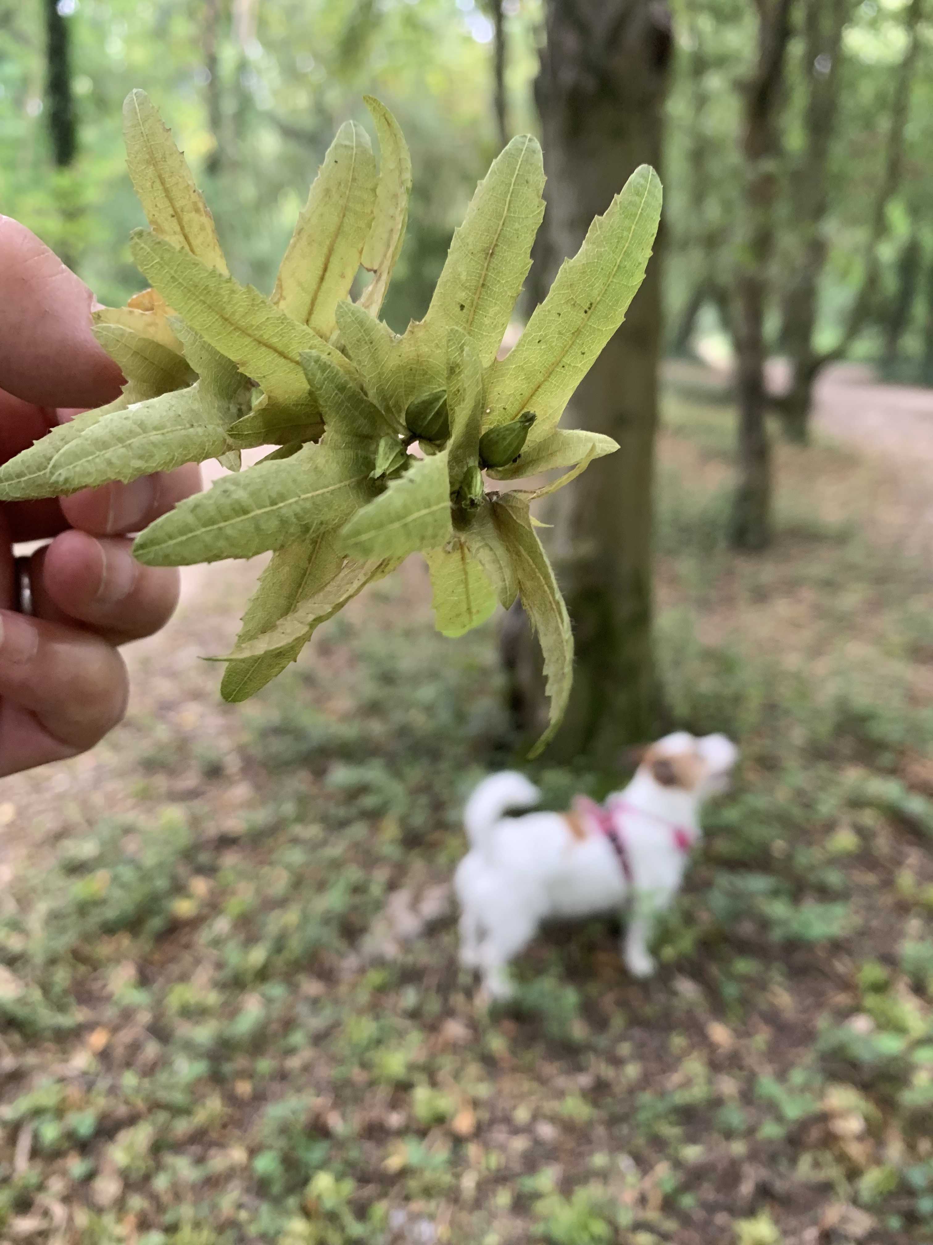 わんです。またまた熱波襲来中ですわん🥵このあいだは35℃にもなっただわんよ。雨が降ってくれると少し涼しくなるんだけどね〜8月に入ってからシデの実がたくさん落ちるようになりました。ブナの実の方がたくさんパラパラと雨が降るように落ちてくるのにリスたちはシデの実のほうが好きなようです。シデの木の上で何匹ものリスがケンカしながら競って食べています。こんなに小さい実、食べるところ少なそうなのに。うーーーん、また妙なドングリを見つけてしまった・・・。鎧を着ているみたい日中は焼け付くような熱波ですが、朝は意外と涼しいです。公園では早くもススキがふわふわになっています。13℃まで下がった日の朝散歩にて事件です!頭の上に葉っぱらしきものが落ちてきたと思って手で払った事が事件の始まりでした。手ごたえがあまり無かったのでクモでも落ちてきたのかと(よくあること🕷️)居場所をてのひらで確認し、そっと覆うように手の中に握る様に捕獲。地面に逃がそうと思って手を開いた瞬間、指に激痛が走りました😫⚡️⚡️思わず大声で『痛いっ!!!!』と叫んでしまったほどです!種類は確認しませんでしたがチラッと見た感じでは1.5センチほどのミツバチ🐝だったと思います。イヤ、しかし痛い、痛すぎる。大声を出したので心配してぴょんぴょんと飛びかかってくるあんさんにも構ってやれず、急いで水道のあるエリアへ移動します。刺されたと思われるところをぎゅっと摘まんで毒だししながらしばらく流水で流しました。この間、ずーーーーーっと激痛です。帰宅してから夫と24時間営業の薬局に行って応急処置を相談してきました。初めての蜂刺されだったけどアレルギー反応は全くでませんでした。薬を2種出してもらい、経過観察となりました。薬局のおじちゃん、日本語を習っているそうで、私の問診より夫と日本語で会話ばっかり。週一でオンラインレッスンをしているそうです。結構年配だと思うけど日本語に挑む姿勢は尊敬するなー。やっと私に『まだ痛いですか?』と聞いてくれましたが、『もの凄く痛いです』と返すと、あっはっは、そうだろそうだろ!と何故か嬉しそう。イヤ、そこ笑うところでは無いんじゃ?と突っ込みたくなったのでした。。。日本語で。帰宅する頃には手全体が腫れて指が曲がらないし指輪も外せなくなりました。毒針と毒袋は確認できなかったけどいつ落ちたのかなぁ。。。そして翌日。腫れはまだ残っていますが痛みはほとんど無くなりました。激痛は約3時間くらい、その後半分くらいになった痛みが夜まで(約7時間)残りました。更に翌日(刺されてから丸2日)刺されたところがぽつんと青痣になっています。手の全体にあった腫れは引き、刺された指だけになりました。そう言えば薬局のおじちゃんが、次回刺されてしまったら可能であれば刺されたところをお湯で温めると良いって言ってた。おや?冷やすのでは?と思いましたがお風呂より熱いお湯で毒を無効化出来るはずだと。毒は熱に弱いらしいです。こちらでは温めるのが常識のようで驚きました😳あんちゃん🐶も構ってやれなくてごめん🙏よ💦わんがこんなに心配してやったのにお礼のおやつもなしわんか!?恩知らずなママさんめ。こうしてこうしてかんでやるだわん!