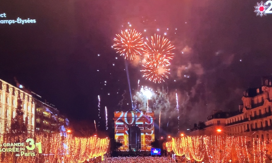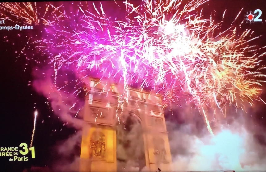 今年は凱旋門前にステージが設置され、夕方から年明け直前までスペクタクルを延々とやっておりました。