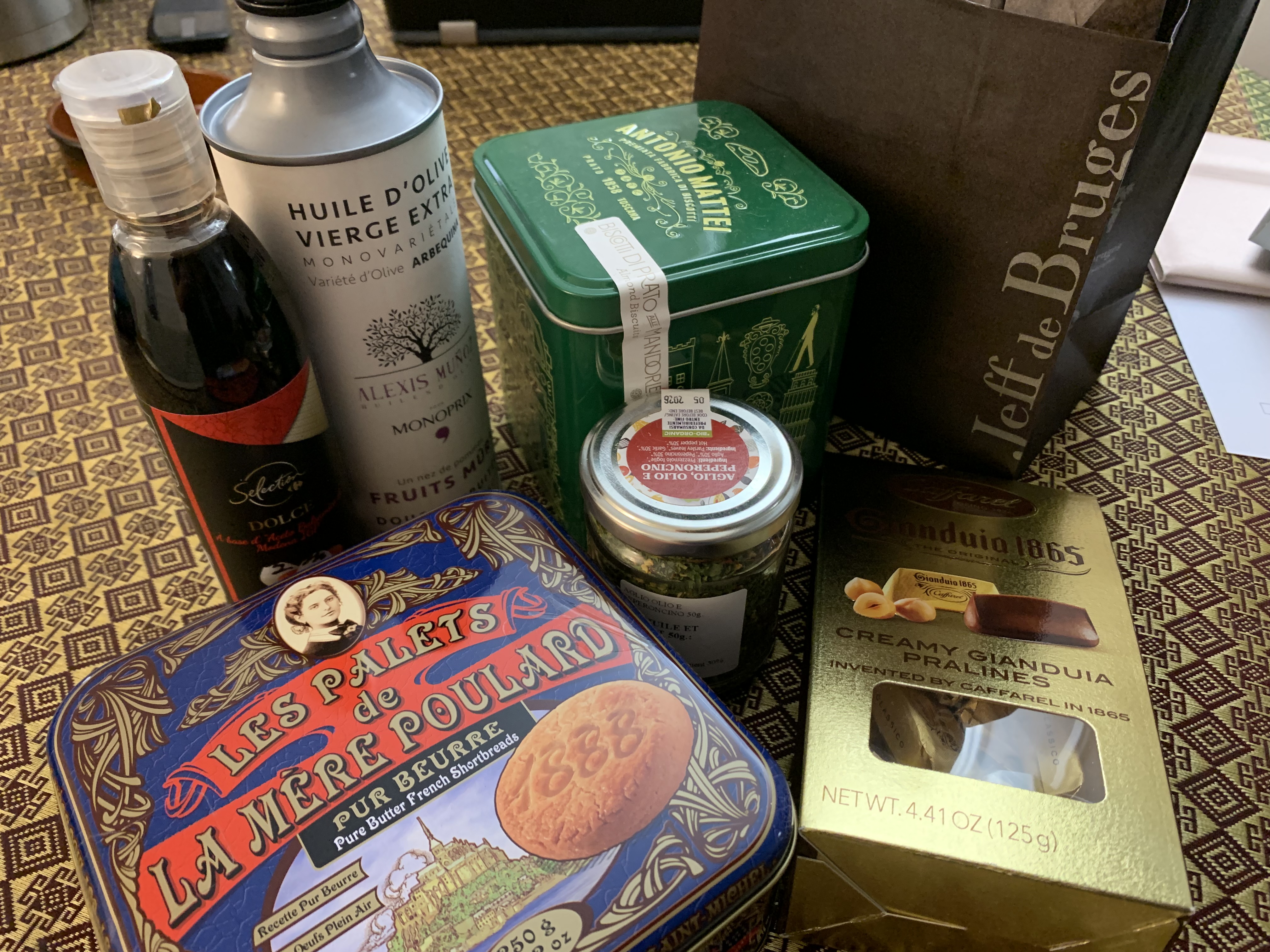 イータリー(EATALY)で見つけたバルサミコ酢やオリーブオイル、缶入りビスコッティなどです。