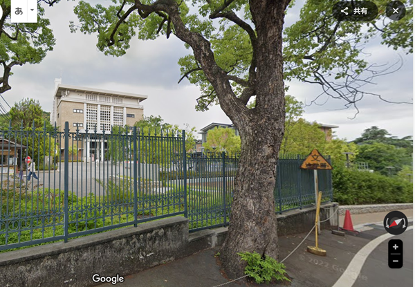 京都女子大の正門横に大きな楠が生えていました。巨木なので当然、京都女子大学がキャンパス拡大でこの場所にキャンパスを移転する前から生えていた巨木だったはずなのですが・・・ (元は神道・神官の学校があったのです)この様に景色の中に融け込んで・・・・と言うより、景色を作っていた木だったのですが・・・・(グーグルマップのストリートビューより借用)それがこの様にバッサリと・・・この辺りは風致地区で建物の色、屋根の形から始まって色々規制があって、その中に木の伐採にも規制が有るのです。何故?? と思って近寄りますとこの切り株の状態だと、これは仕方ないと納得でした。こんな巨木が倒れたら大惨事!!!逆にこんな状態になっているのが良く分かったなあと 感心です。しかしかなり残してこの切り方、ひこばえを狙っているのかなぁ??? それよりも 小さく 影の声ですが・・・・周りの校舎は屋根付きの建物に変わって凄く景観が良くなったのですが・・・・この正面の洋風の建物も 建て替えてくれないかなぁ???