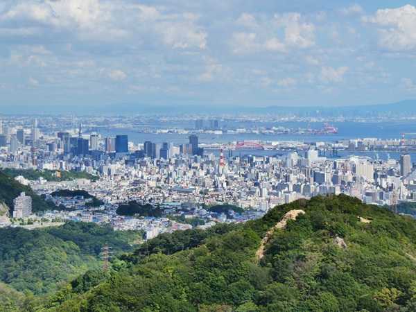 昨日の続きです。横尾山から 更に(東へ)進みますと、益々神戸の街が近くなります。そして、階段を下って行くと、いよいよ難関でもあり、目的でもある「馬の背」が見えて来ました。登りにかかる我がパーテイの二人が遠くに見えます。遅れて私もロッククライミングを開始して・・・・パチリ。馬の背のピークに到達。更に更に神戸の街が近くに・・・望遠でアップしますと・・・海岸線中央部に万博の大屋根リングらしきものが見えました。肉眼ではとてもとても見えないのですが、30倍ズームの威力で・・・間違いなく大屋根リングの木組みが写っていました。後ろの方に赤く見えているのは阪神高速道路湾岸線の高い高い港大橋(高架橋}です。手前のクレーンは・・・神戸六甲アイランドの岸壁クレーンです。神戸の六甲アイランドと大阪の(万博会場の)夢洲とがこんなに近くに見えるのは30倍ズームのせいです。あと、長い長い下山道を進むと神社が・・・・・・・・でした。ここまで下りて来ると、もう高層マンションの方が高く・・・いよいよ板宿の街に下り,山陽電車・板宿駅がゴール。ここで解散となりました。標高は最高で300m余の山並みでしたが、アップダウンが多い事、長い長い階段が3ヶ所もあるハードな登山でした。