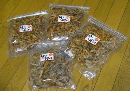 7月に北海道の登山に行ったとき、サロマ湖畔の道の駅で「ホタテの焼き貝ひも」と言うのを見つけました。どんなものか???? で、試しに買ったのでした。帰って食べて見ると・・・・これが美味しかったのです。カッパえびせんではないですが、見たら食べる、食べたら止まらない、良いおやつだったのです。夫婦二人なのに直ぐ無くなってしまいました。そこで今度はnetでお買い物!!!! 製造元は勿論違ったけれどそれも間違いなく美味しかったのです。・・・・で、それも食べ尽くした??? ので・・・3回目も又ネットでお買い物!! ・・・今度は子供達にもと4袋一家に一袋ずつ!! 多分またまた買う事になるのでは・・・・!!