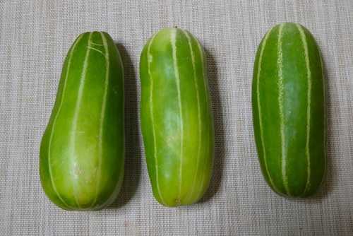庭のキュウリが葉の陰に隠/れていたのでお化けキュウリにまで育ったのをピクルスにすると美味しかったことを8/3のブログに書きました。8/3のブログはここを。それに味をしめてキュウリノ収穫が終わった後、安く売っていた瓜をピクルスにしてみますと8/12のブログに書きました。8/12のブログはここを。その時の画像がこれなの/すが・・・2本をピクルス(右)に 1本をお漬物(左)にしたところ・・・キュウリとはまた違ったピクルスとお漬物に・・・・ピクルスは漬けて直ぐよりも日を置いた方が歯応えが良くなりました.漬かってから数日しか経っていないのに、ポリポリ、ポリポリとと止まらない上に、お裾分けも有ったので、もう底をつきそうになってしまったのですが・・・・また売っていたと買って来てくれました。今度は少し小振りなのですが・・・・これでまた美味しいピクルスとお漬物を食べることが出来ることになりました。結論は瓜のピクルス歯応えも味もお化けキュウリ同等、若しくはそれ以上でした。