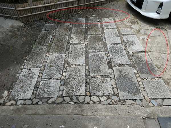 敷石の周りの赤丸で囲った部分に石を埋める工事ですが・・・「ローマは一日にして成らず」なんて書いていましたが・・・何回も何回も拾って来た石を・・・都度埋めて来て、最後にここまで来たのですが・・・更に進めて・・・ついについに完成しました。長い道のりでしたが、この工事はこれで終わりました。何個の石を埋めましたやら ? ? ?